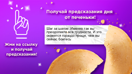 "Шаг за шагом. Именно так вы преодолеете все трудности. И это окажется гораздо проще, чем вы сейчас боитесь" https://ok.ru/game/512000512485?hsf=wp573281292045 - ежедневные предсказания для тебя!